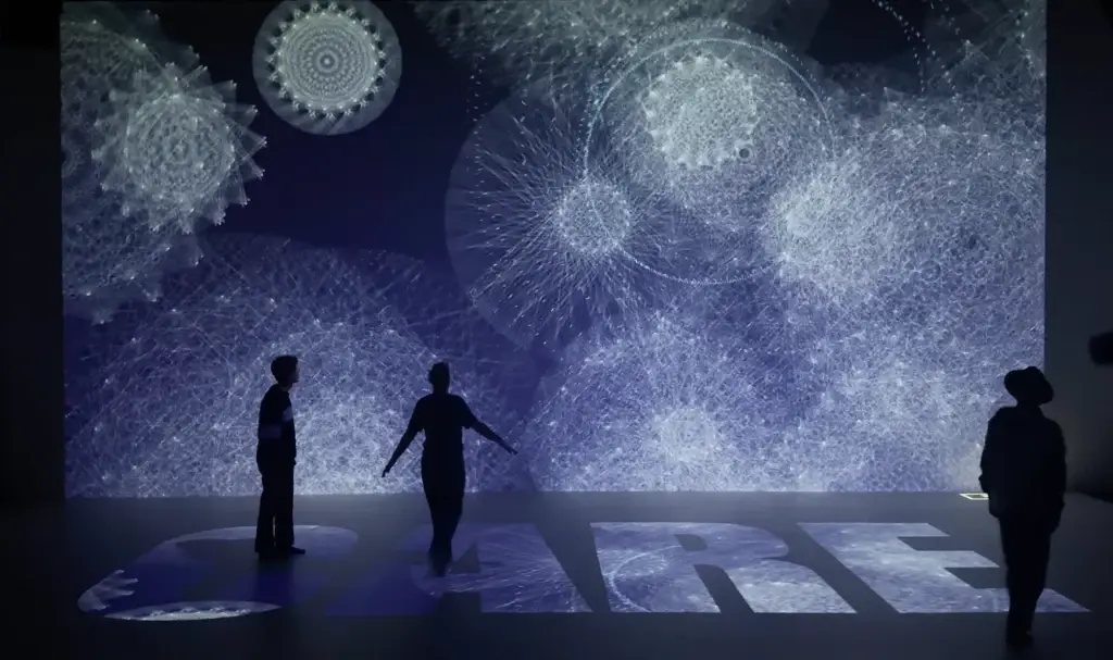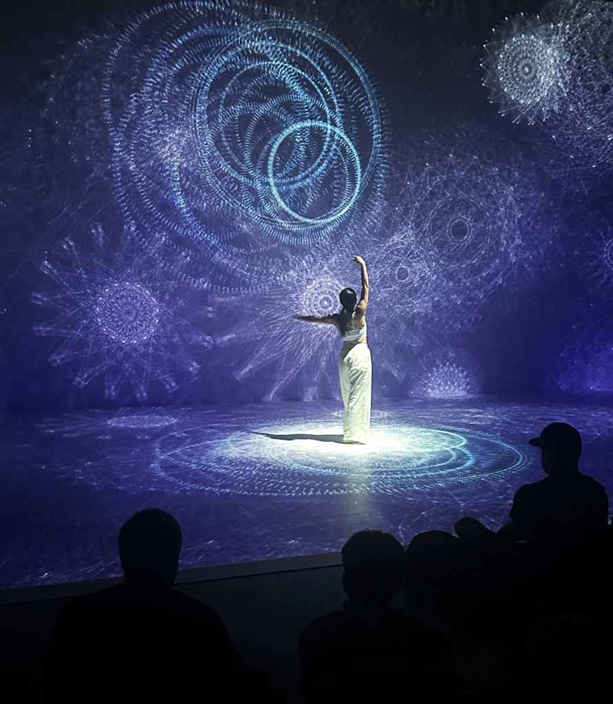 “Entre deux mots“ is an audiovisual and immersive dance performance which has been shown at the Ars Electronica Center in the Deep Space 8K. It uses the laser tracking system developed by the Ars Electronica Futurelab.